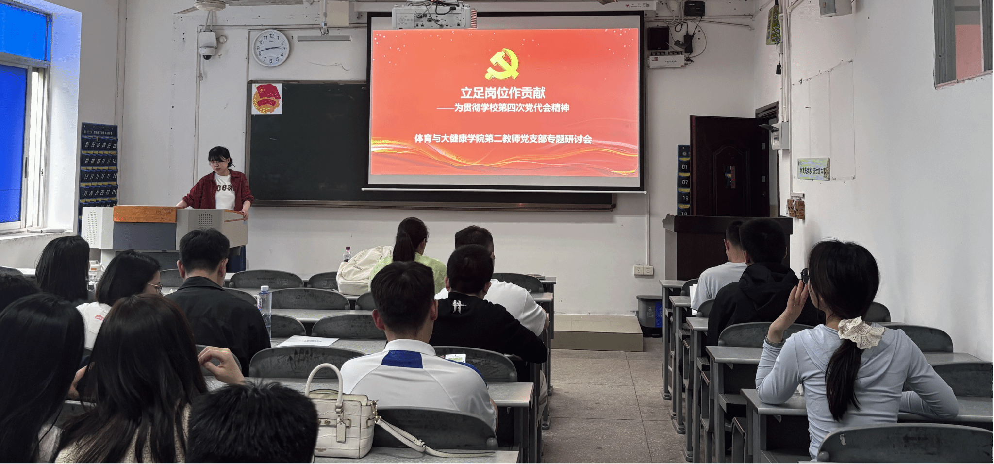 4月16日下午,体育与大健康学院第二教师党支部于第二教学楼212教室召开党员大会,支部书记黄燕主持会议,全体党员参加。本次会议重点进行重要文件精神学习,并围绕“立足岗位作贡献”开展交流,致力于强化党员政治素养与工作作风,推动工作的有效开展。