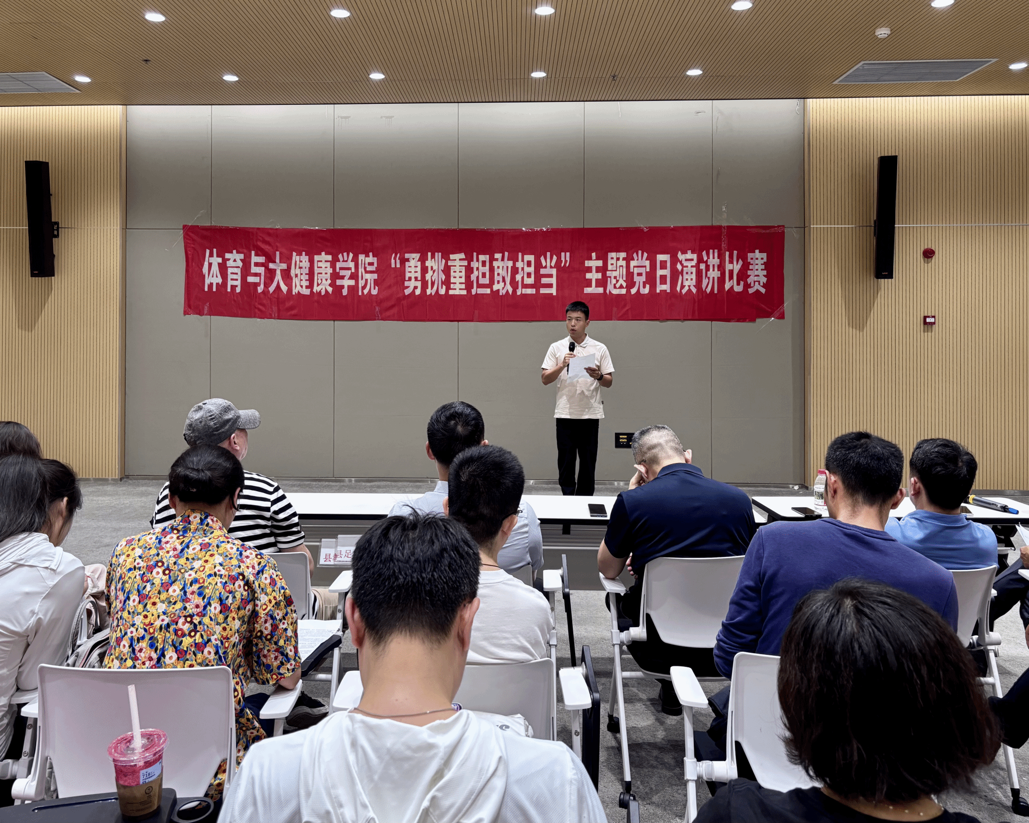 下午,在高县瀚笙文体艺中心会议室,由教师第一党支部书记詹嘉文主持的“勇挑重担敢担当”主题演讲比赛拉开帷幕。八位党员同志紧扣学校第四次党代会“51368“战略布局与“特色鲜明的一流应用型综合大学“建设目标,结合教学科研、学生培养、社会服务等岗位实际展开讲述。有的聚焦“课程思政”创新,分享如何将体育精神与家国情怀融入课堂;有的立足“产教融合”实践,阐述如何依托地方资源提升学生专业能力,展现党员教师带领学生开展体育帮扶的生动实践。