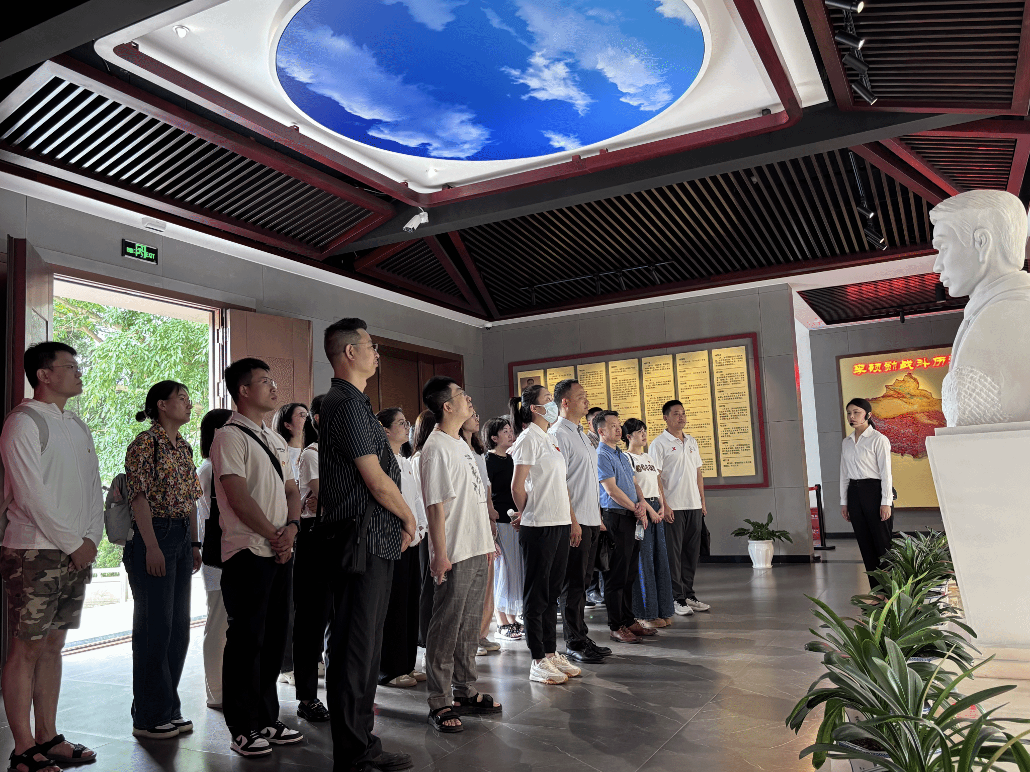 活动首站,全体党员来到李硕勋烈士纪念馆,在庄严肃穆的烈士雕像前重温入党誓词,以铿锵誓言叩问初心;向烈士敬献花篮、肃立默哀,深切表达对革命先烈的崇高敬意与深切追思。走进纪念馆“少年壮志”“投身革命”“浴血奋斗”“浩气长存”主题展厅,通过珍贵历史照片、革命文物及文献资料,党员们全面学习了李硕勋烈士从热血青年成长为坚定共产主义战士的光辉历程,深刻感悟其“革命理想高于天”的坚定信念与“甘将热血沃中华”的牺牲精神。