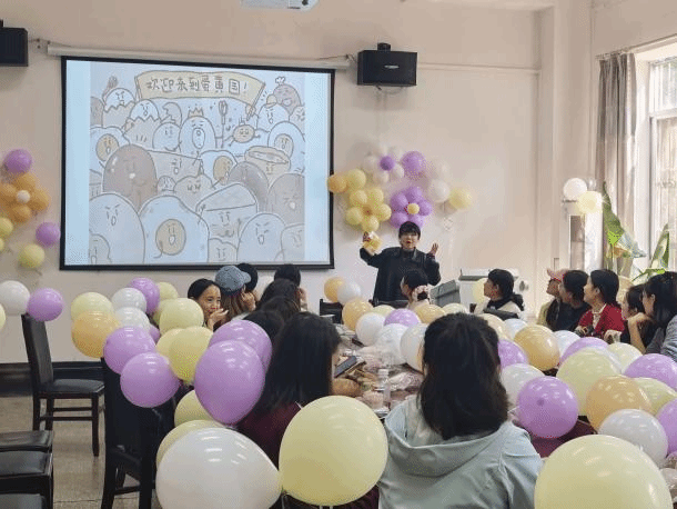 活动现场布置温馨雅致,气球与鲜花相映成趣,营造出轻松愉悦的交流氛围。在詹嘉文的引导下,张华琴、杨书平、黎洁、黄燕四位老师依次登台分享。她们结合自身教育教学经历与阅读感悟,从经典著作的思想内涵到生活随笔的情感温度,从职业成长的思考到人生价值的探寻,娓娓道来、情真意切,生动展现了新时代女教师爱岗敬业、积极向上、热爱生活的精神风貌,赢得了现场阵阵热烈掌声。