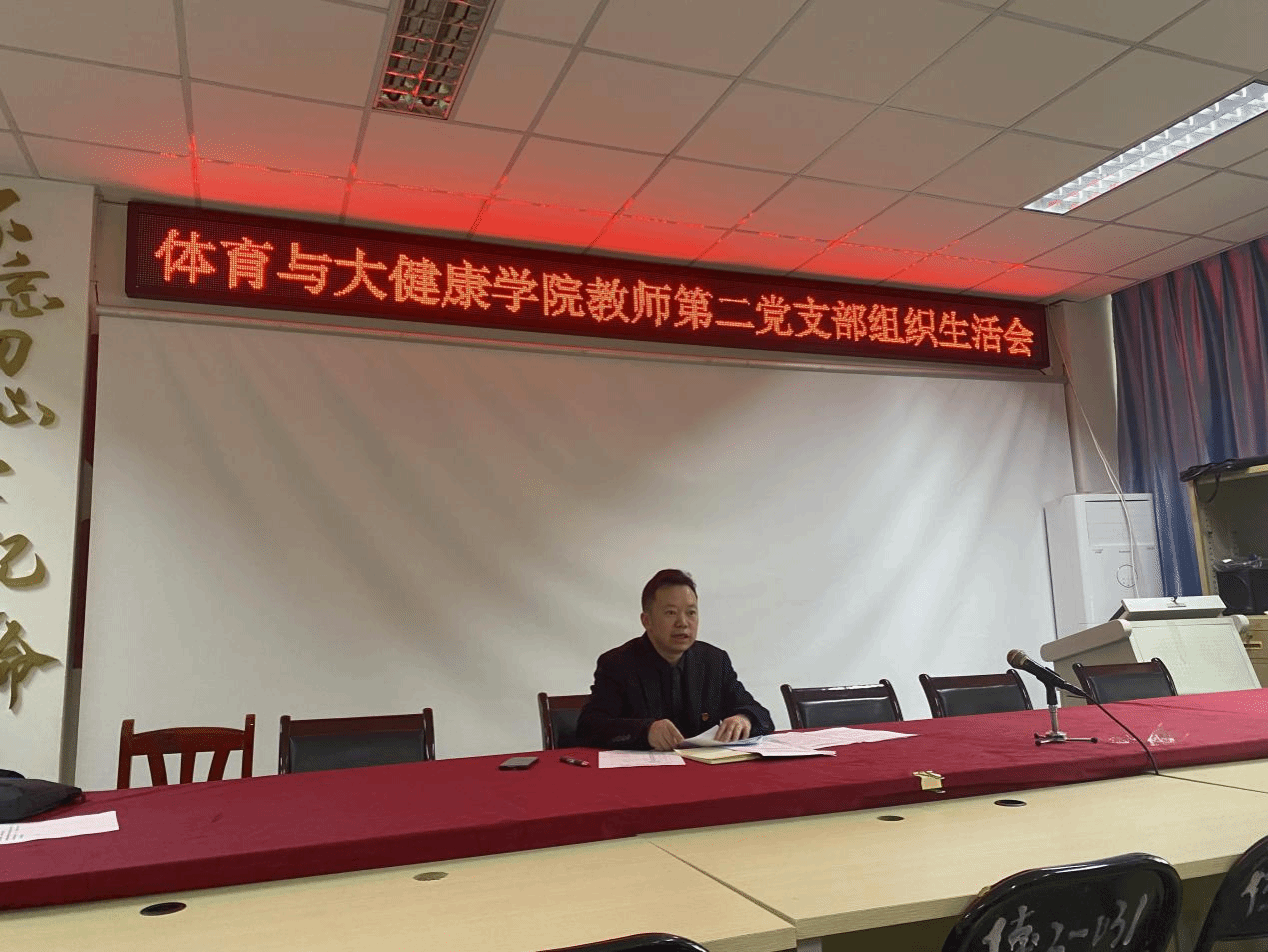 为深入学习贯彻党的二十大精神,坚持不懈用习近平新时代中国特色社会主义思想立心铸魂,根据《中共宜宾学院委员会组织部关于召开2022年度基层党组织生活会和开展民主评议党员的工作方案》(宜学院组发〔2023〕2号)的要求,体育与大健康学院党总支教师第二党支部于2023年3月29日在行健楼2楼会议室召开了组织生活会并开展民主评议党员活动。体育与大健康学院党总支教师第二党支部全体党员参加会议,会议由支部书记刘亮同志主持。