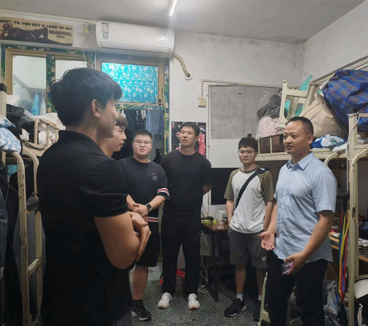 走访中谢江涛了解部分计划考研同学的备考情况,叮嘱暑期社会实践的同学要提高出行意识,提醒同学们特别要注意宿舍安全用电等问题。老师们与留校同学们进行了亲切交流,详细询问了同学们的假期安排、学习进展、生活需求以及遇到的困难。特别询问了是否有因暴雨受灾的家庭。并强调了遵守宿舍管理规定、提高安全防范意识的重要性。