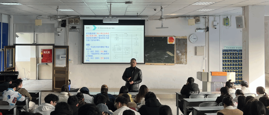 谢江涛传达了习近平总书记来宜来校考察重要指示精神,幸福生活是靠劳动创造的,大家要保持平实之心,客观看待个人条件和社会需求,从实际出发选择职业和工作岗位,热爱劳动,脚踏实地,在实践中一步步成长起来。谢江涛根据学校多年和用人单位合作的经验,结合实际情况和近几年我院就业数据,就2025届医学专业毕业生的就业形势做了分析,用鲜活的案例引导同学们,转变就业观念,并对网签流程做了详细讲解。