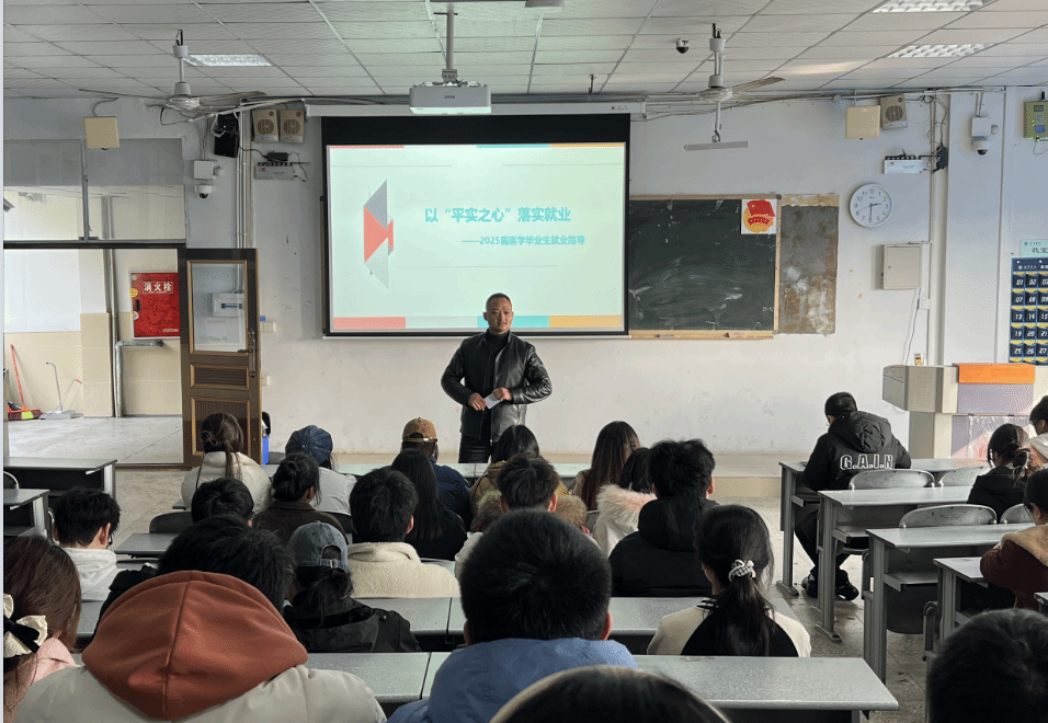 为促进我院2025届医学专业毕业生高质量充分就业,帮助毕业生建立正确的就业观和择业观。2025年1月5日,体育与大健康学院党委副书记谢江涛在二教502教室做以“平实之心”落实就业去向主题讲座,2025届医学专业班主任及毕业生参加。