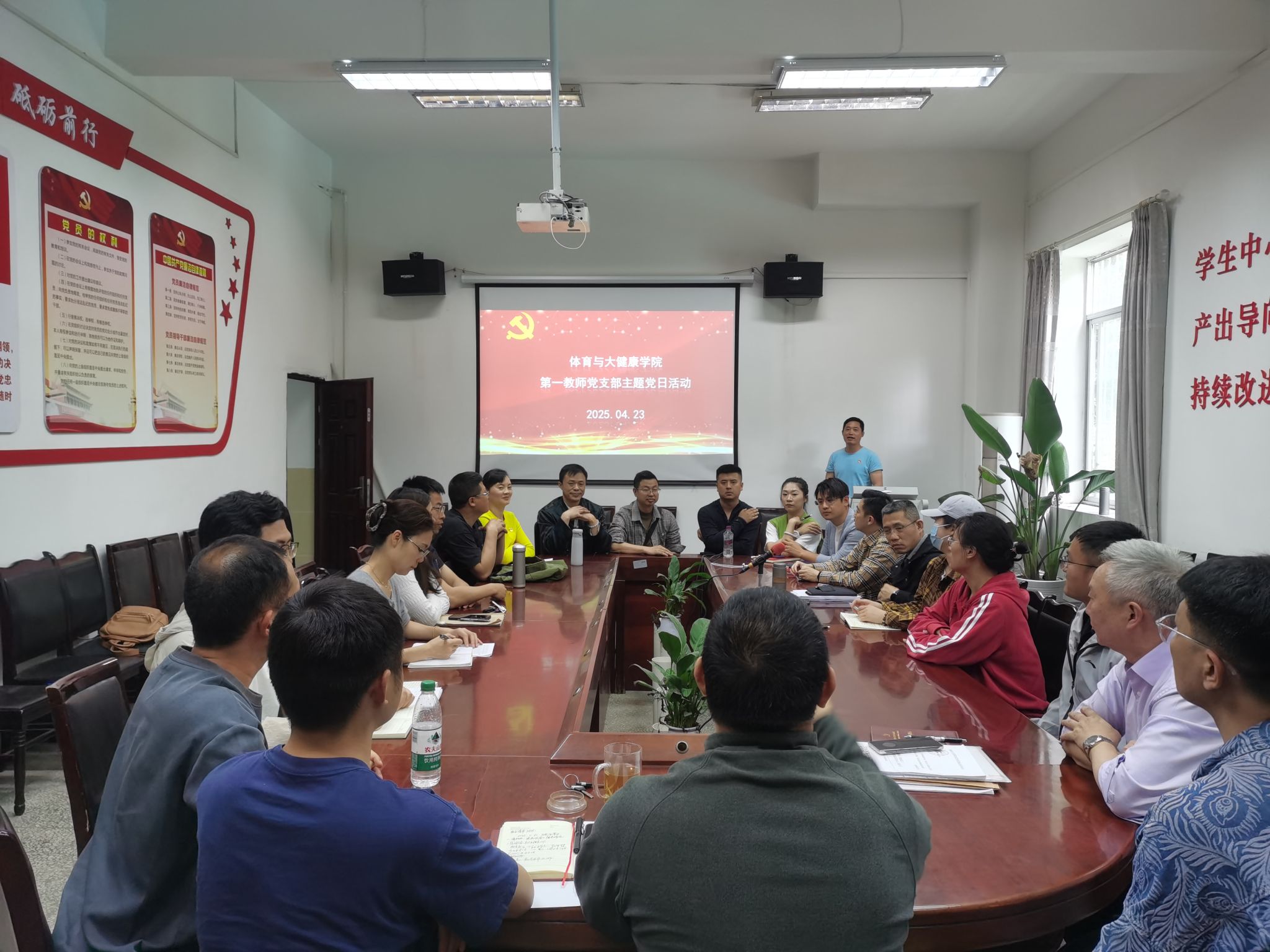 为深入学习贯彻中央八项规定精神,及宜宾学院第四次党代会精神。4月23日,体育与大健康学院第一教师党支部在二教楼118会议室召开“立足岗位作贡献,担当作为促发展”主题党日活动暨专题研讨会。会议由党支部书记詹嘉文主持,学院院长韦颂及全体党员教师参加。