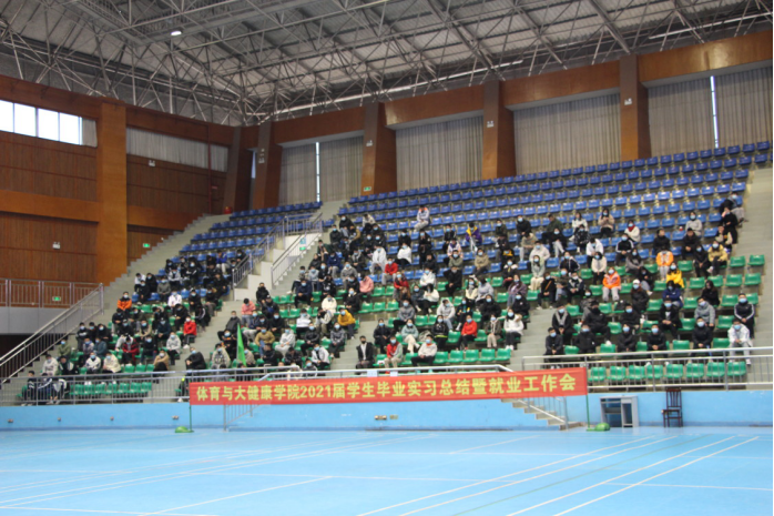 为提升体育与大健康学院就业率,提高就业质量,加强并贯彻 “先就业、后择业”就业观的教育。2020年12月30日14:00,体育与大健康学院在体育馆召开2021届学生毕业实习总结暨就业工作动员会。体育与大健康学院党总支副书记串凯(负责工作)、副院长韦颂(负责工作)、副书记、副院长谢江涛、副院长杨晔、党政办公室主任胡毅及各辅导员和相关班主任老师出席会议,2021届和2022届全体毕业生参加会议。会议由教学秘书郑红玲老师主持。