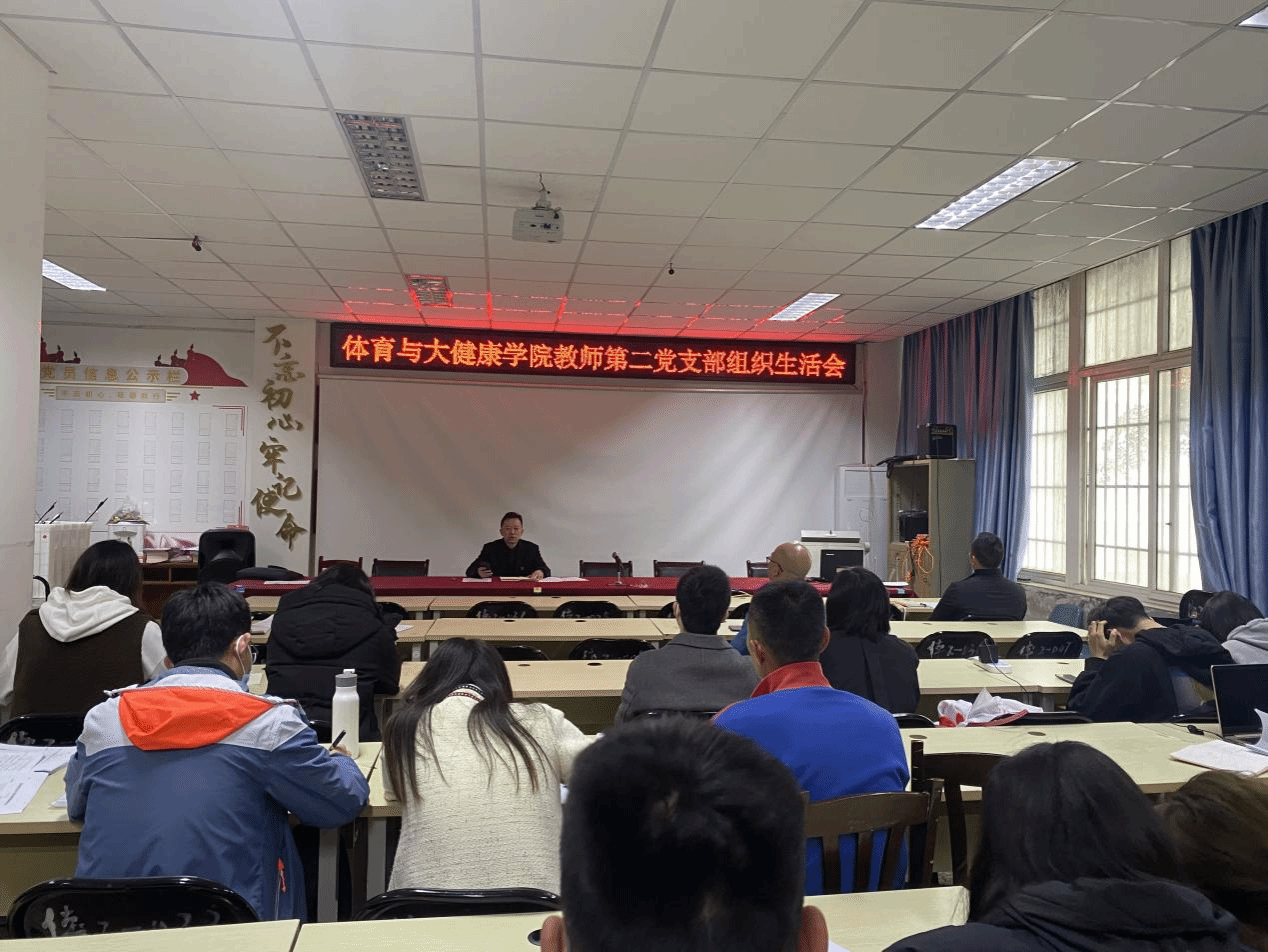 为深入学习贯彻党的二十大精神,坚持不懈用习近平新时代中国特色社会主义思想立心铸魂,根据《中共宜宾学院委员会组织部关于召开2022年度基层党组织生活会和开展民主评议党员的工作方案》(宜学院组发〔2023〕2号)的要求,体育与大健康学院党总支教师第二党支部于2023年3月29日在行健楼2楼会议室召开了组织生活会并开展民主评议党员活动。体育与大健康学院党总支教师第二党支部全体党员参加会议,会议由支部书记刘亮同志主持。