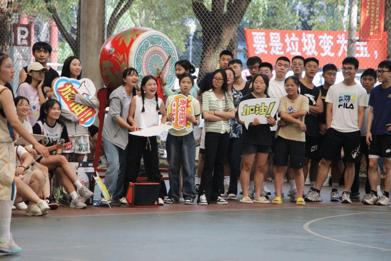 扣篮大赛结束,女子决赛进入下半场比拼。阵阵鼓声伴随着观众的掌声与呐喊,场上比分亦不相上下。随着比赛的进行,各参赛选手奋力拼搏,两队比分逐渐拉开差距。最终,口哨声响,20级6班与22级5班以70:50的比分结束比赛,20级6班成功夺得“裁判杯”篮球赛女子组桂冠!