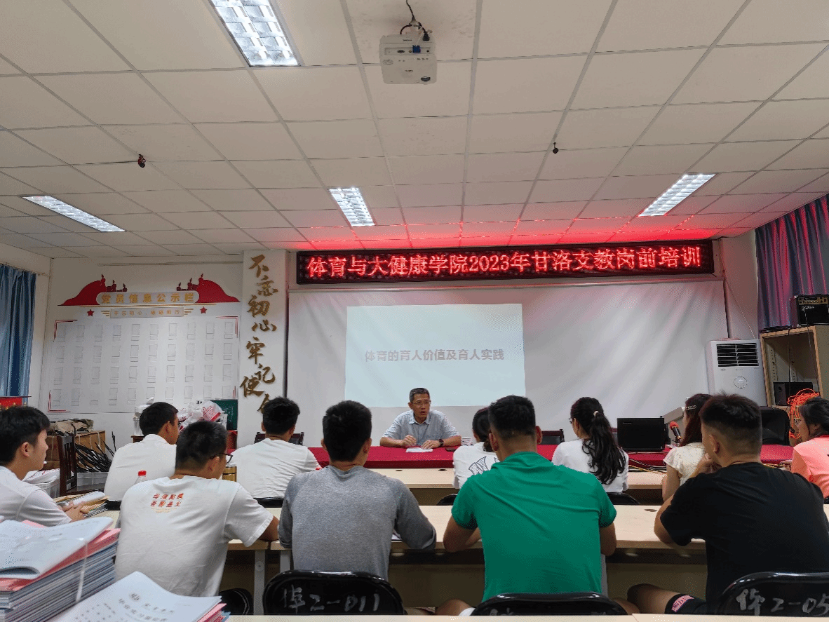 为深入贯彻党的二十大精神,全面落实省委、省政府推进巩固拓展脱贫攻坚成果与乡村振兴有效衔接决策部署,根据《四川省教育厅关于实施师范生顶岗实习凉山州支教计划的通知》(川教函〔2019〕310号)的精神,支撑我校对地方经济发展的服务功能,体育与大健康学院派出12名体育教育专业学生参加2023年秋期甘洛县开展的是师范生顶岗实习支教活动。为更好地提升顶岗实习学生适应教学岗位的素养和能力,体育与大健康学院于2023年8月29日下午在行健楼205教室对学生进行岗前专业培训。