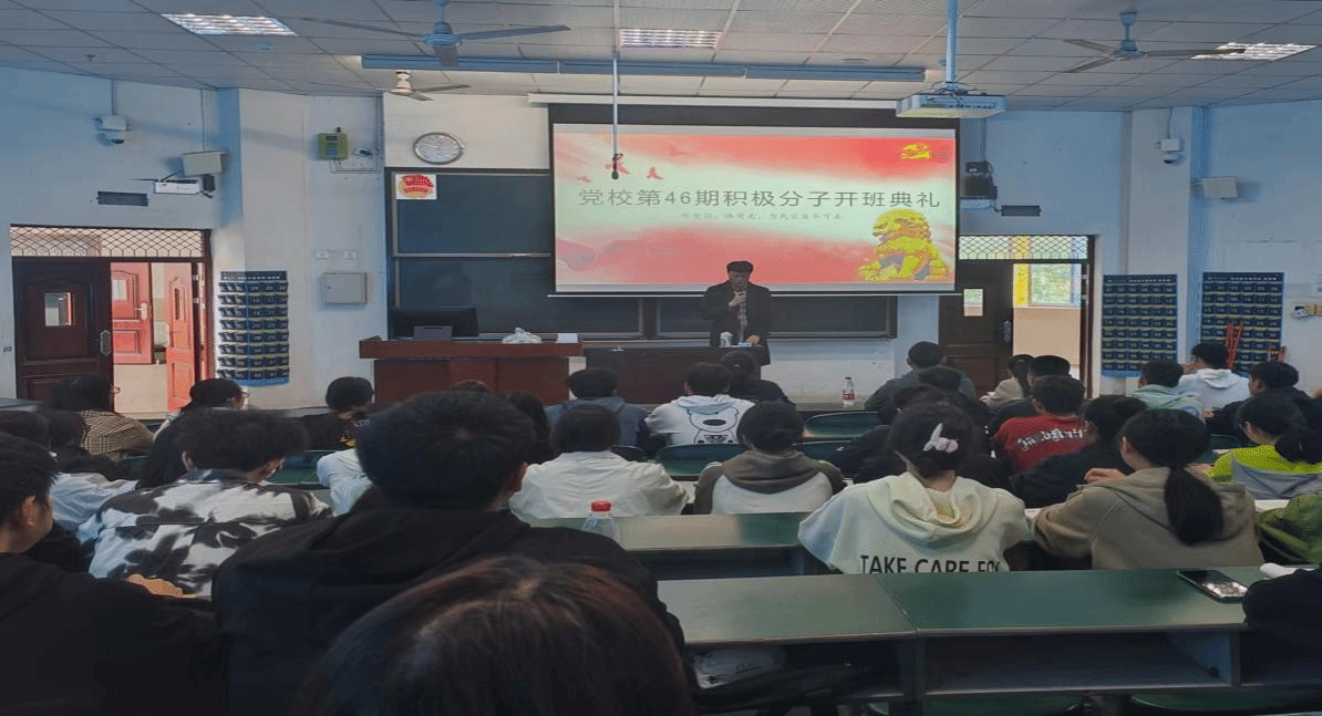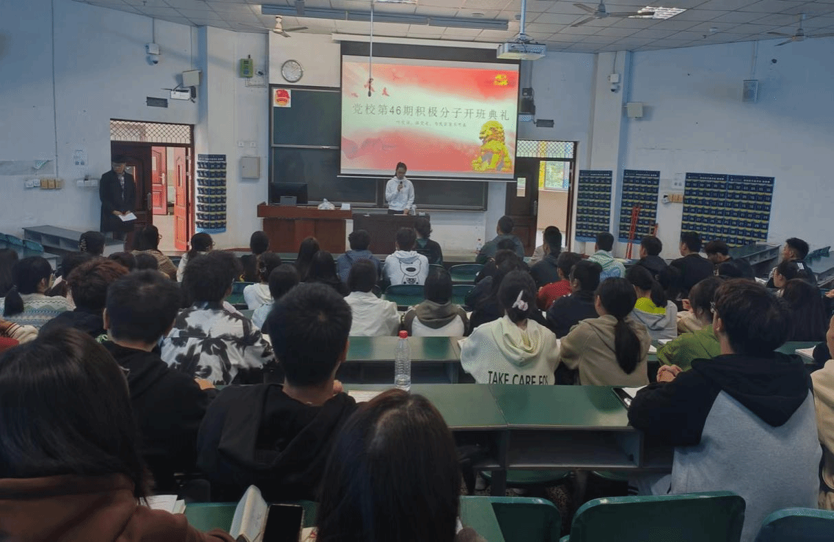 4月9日,体育与大健康学院于A区硕勋楼B202教室举行了第46期入党积极分子培训班开班仪式。本次培训对象为我院第46期90名入党积极分子,党总支副书记谢江涛、学生第一党支部书记张琳洁、党务负责人张露露和党校班主任张莉出席开班仪式,开班仪式由学生第二党支部书记张鹏飞主持。